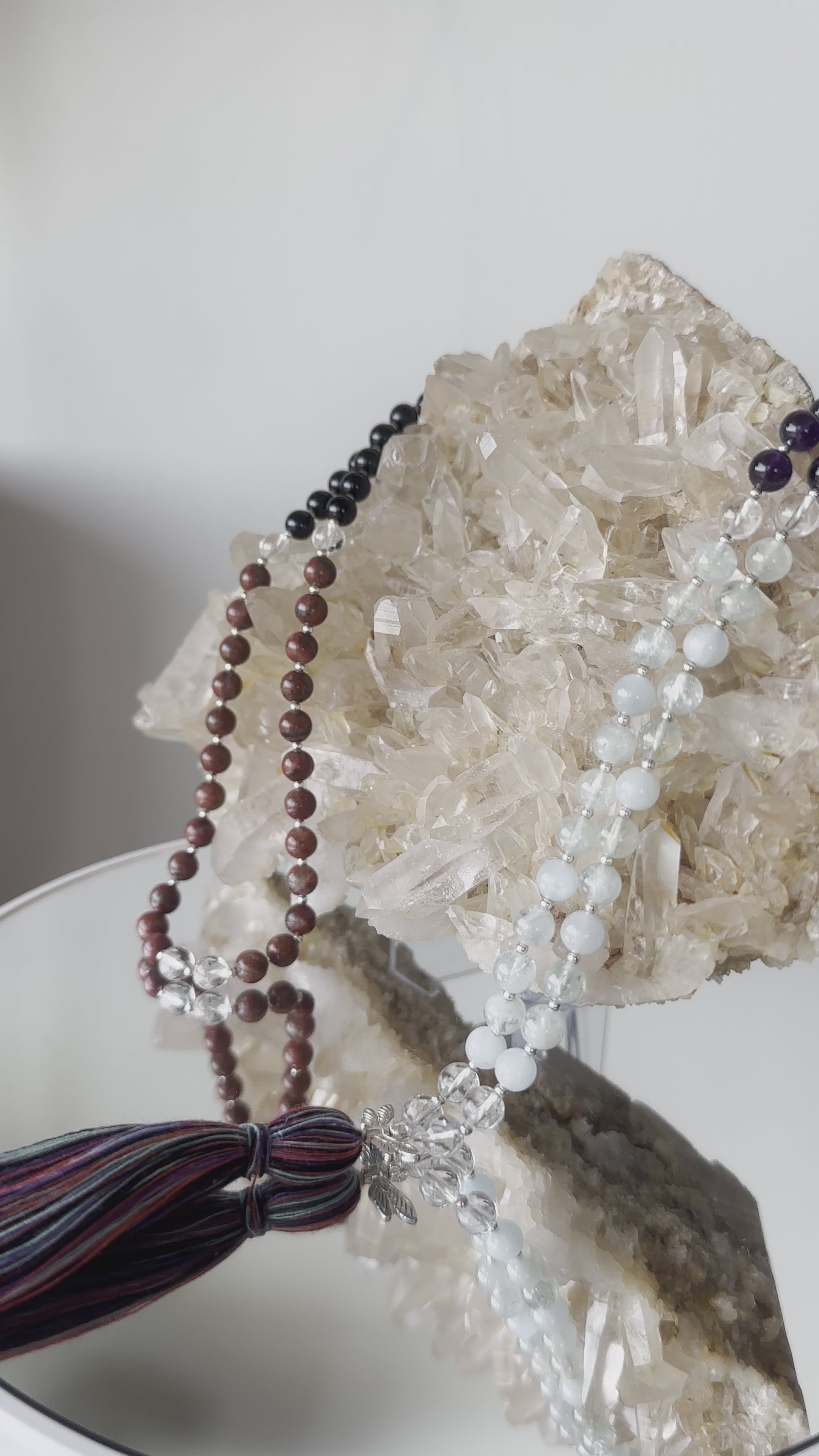 Mala necklaces have long been valued for enhancing meditation practices. The 108 beads provide a tangible way to count breaths, mantras, or affirmations, deepening mindfulness and awareness. Each gemstone bead carries its unique vibrational energy, amplifying your intentions and enriching your meditative experience.